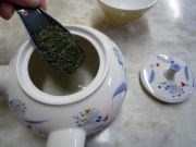 ② 急須に1人分3gの茶葉を入れる。(茶葉の量の目安:1人分→3g、2~3人分→5g、4~5人分→10g)